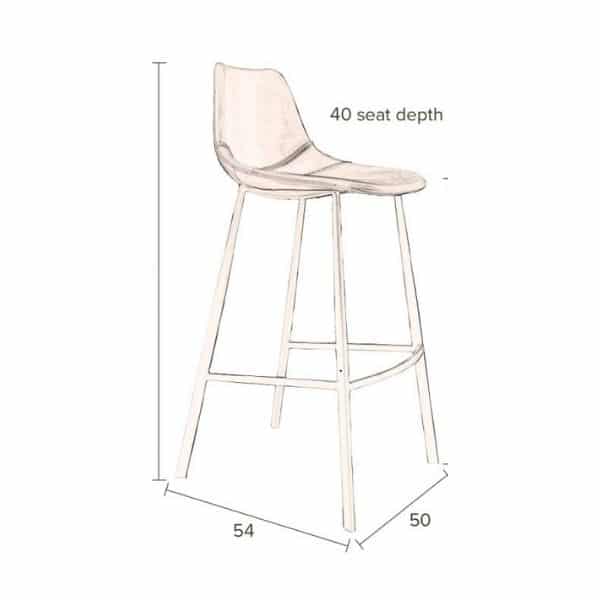 Dutchbone presents a leather bar stool model with pure and vintage lines. Discover the elegant contrast created by the combination of the straight legs and the seat with its curved lines. This bar stool with its contemporary lines fits harmoniously in your mini-bar, your American kitchen or in the garden furniture. Enjoy this very comfortable model equipped with a seat with rounded lines and visible seams, and a footrest below.