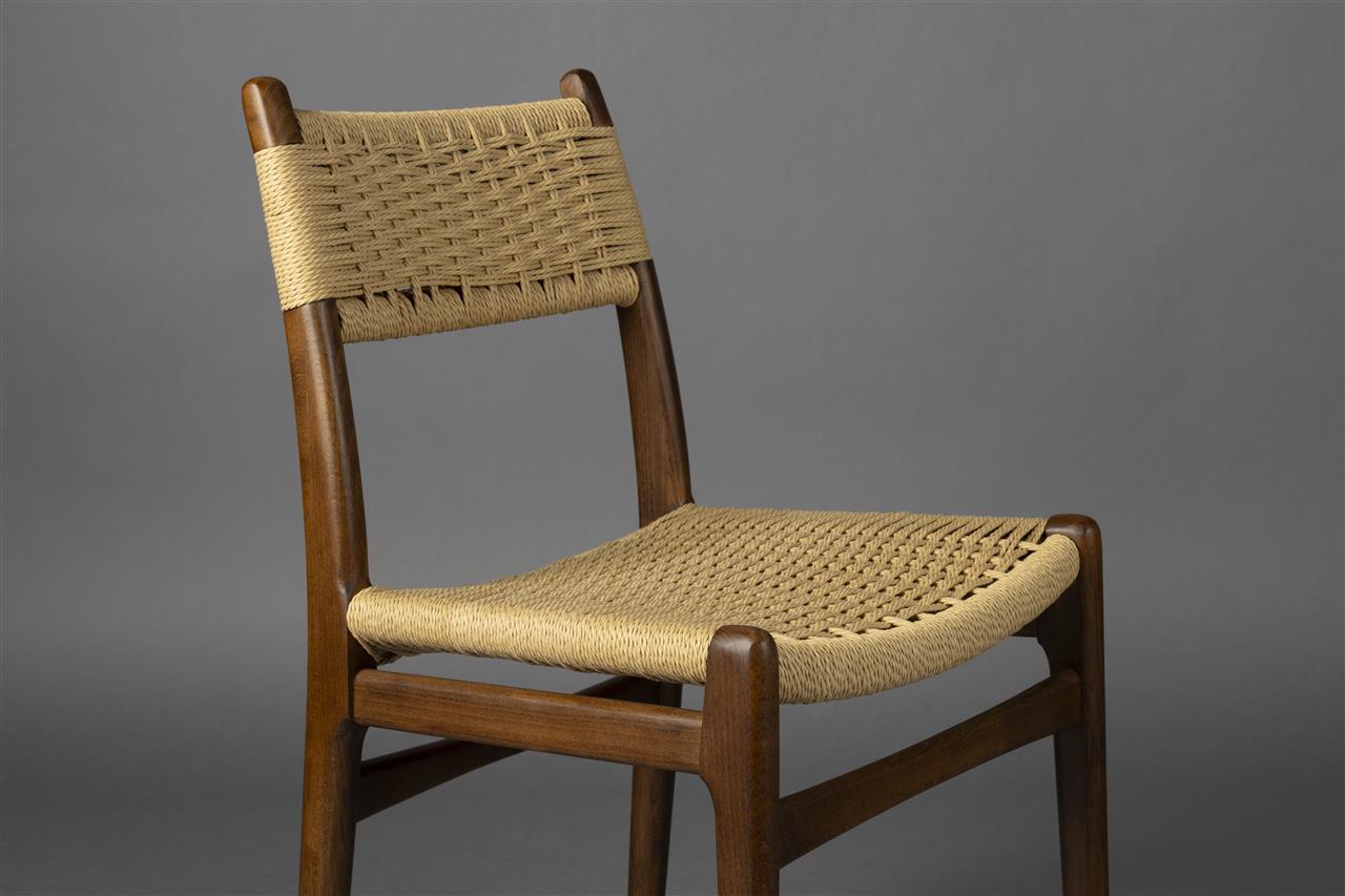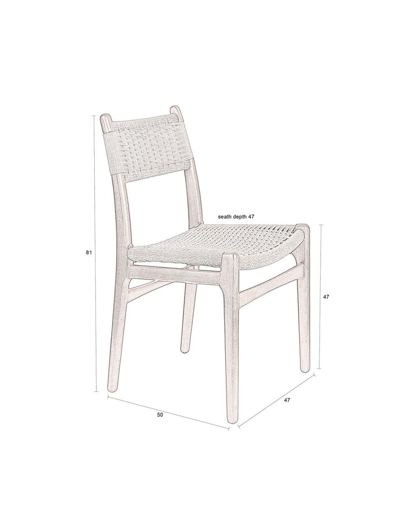 The dining room is the place to enjoy fun stories and good food with friends and loved ones. Give the room even more atmosphere with the Dutchbone Cecile. With its natural colours and materials, this dining chair immediately adds more warmth. The design is inspired by the cosy feeling of an interior from the '50s, '60s or '70s, giving the chair a nice vintage feel. Nevertheless, this chair is perfectly at home in a contemporary interior. It is, of course, the beautifully finished wooden frame and the eye-catching seat and backrest made of woven rope that make the chair special. This combination gives a distinctive look, instantly filling the room with a lovely atmosphere.