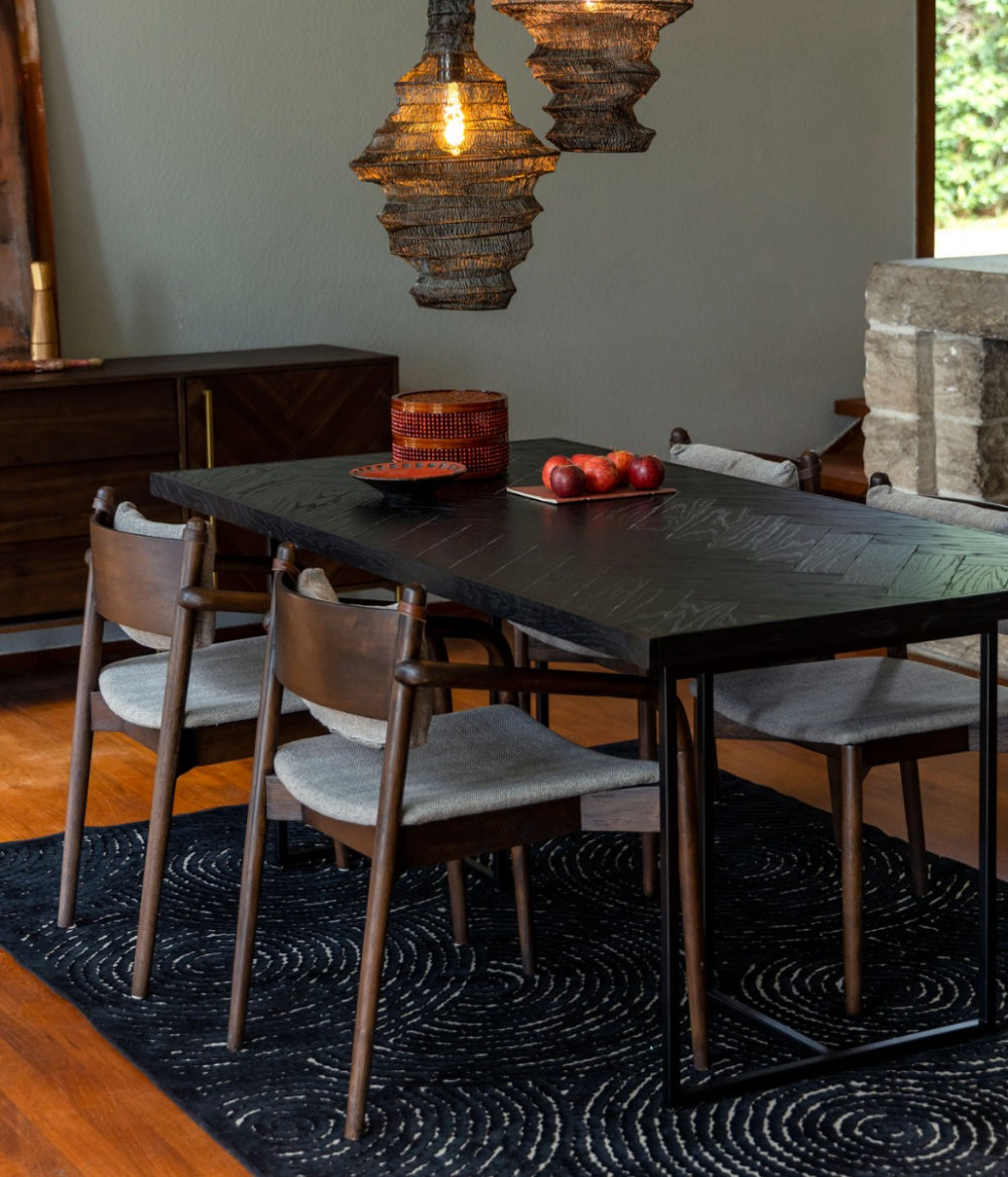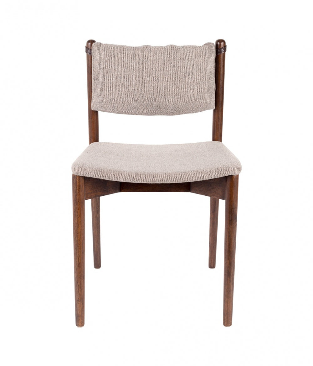 Inspired by 1960s designs, our Torrance chair has a slender solid wood frame with a sleek silhouette. The PU-leather details on the backrest add a contemporary touch. The broad welcoming seat makes Torrance a perfect choice for any dining area.