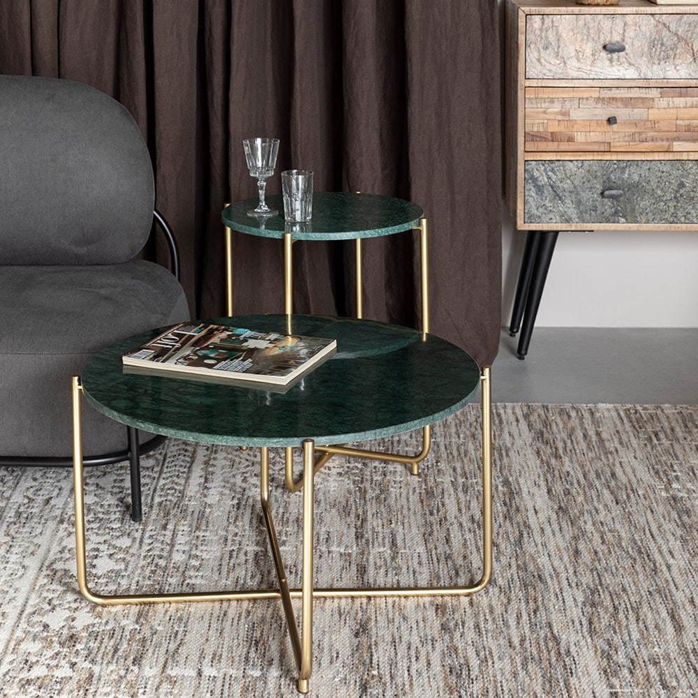 The Timba table from the Dutch company White Label Living was made of green marble. Its beautiful structure combined with iron brass legs is an extraordinary solution that will make your interior look luxurious and dignified.