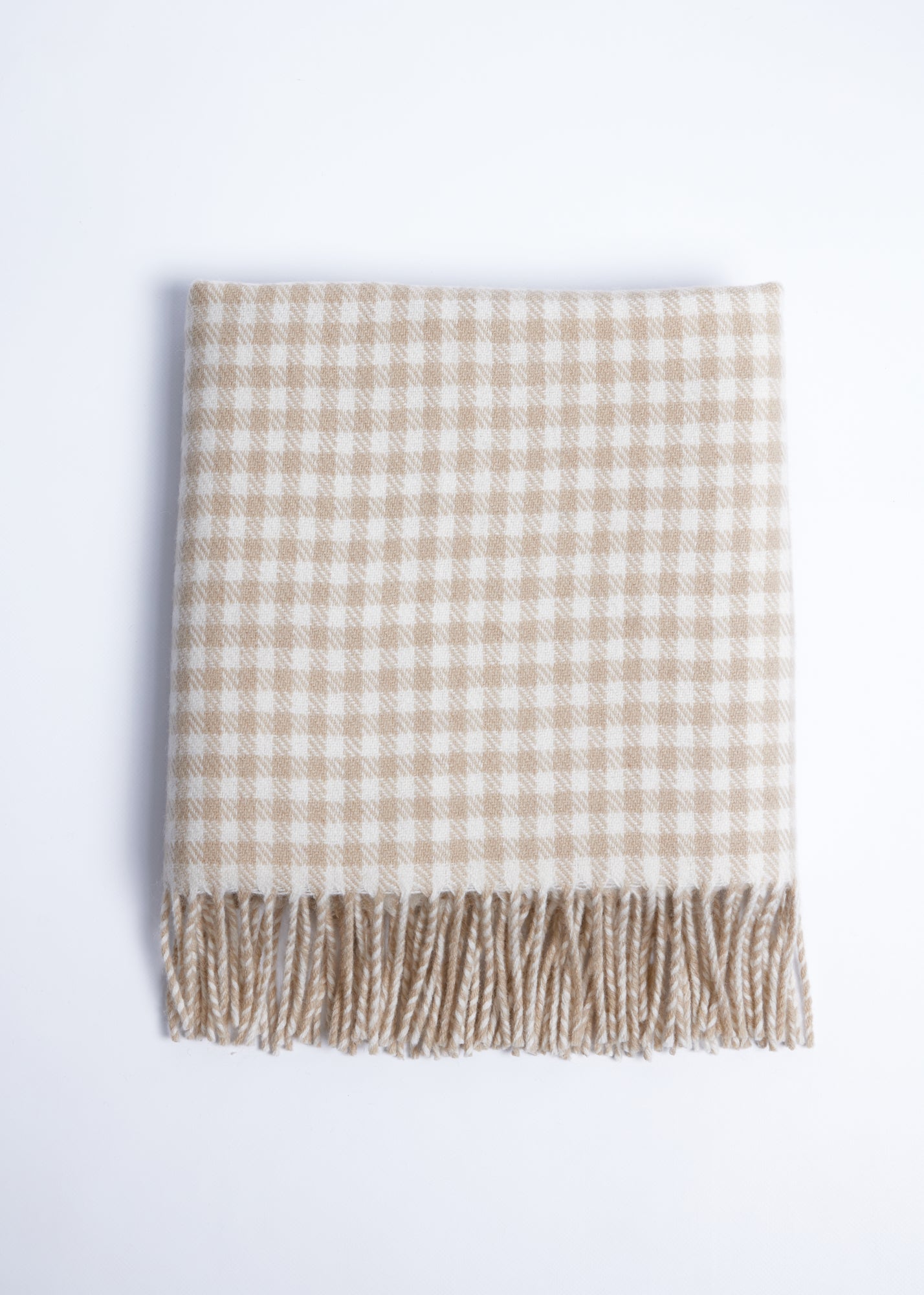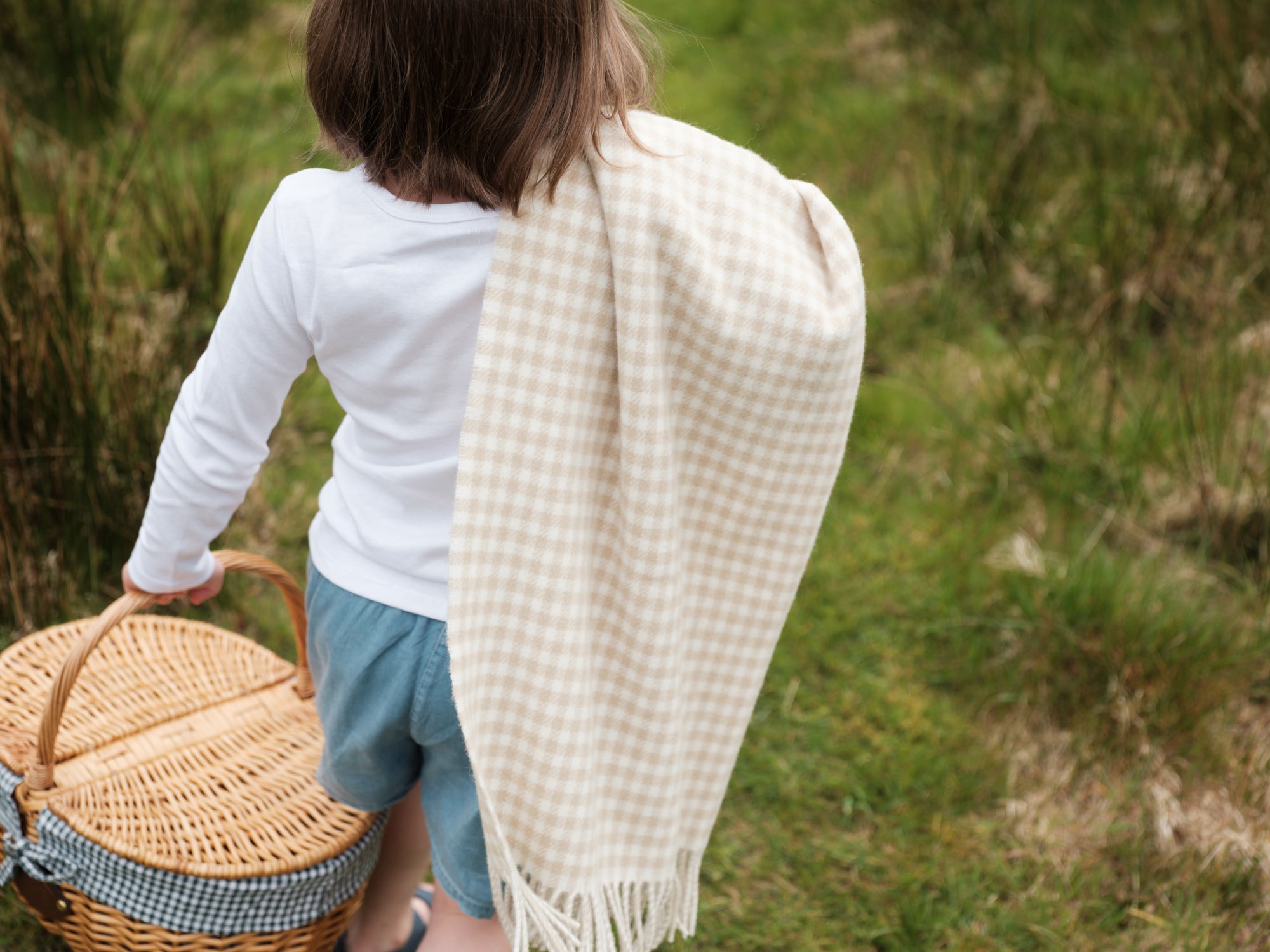 Foxford Fawn Gingham Lambswool Baby Blanket