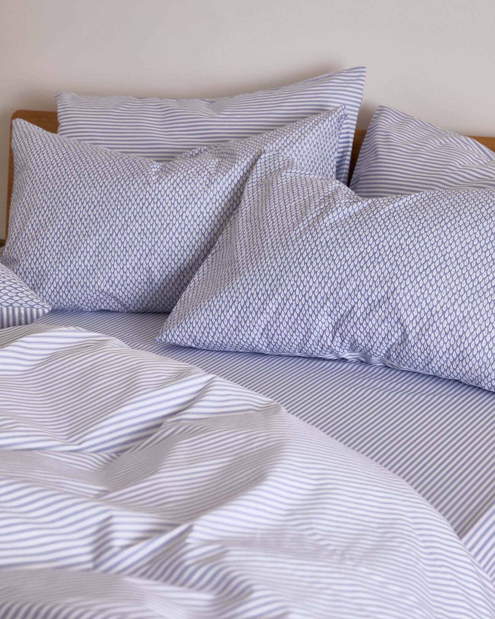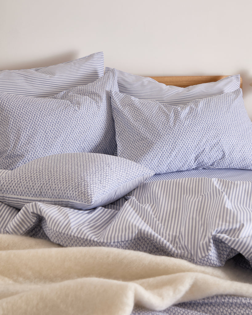 Complete your bedroom with the Foxford Nancy Pillowcase Set featuring a timeless blue oak leaf design with blue ticking reverse. Part of our SS25 Everyday Collection, these pillowcases are crafted with a soft 180-thread count for everyday comfort and timeless style.