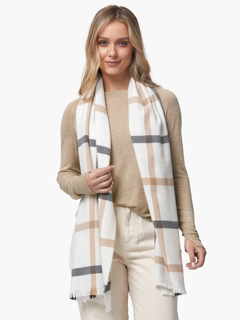 Foxford White Neutral Stripe Extra Fine Merino Scarf