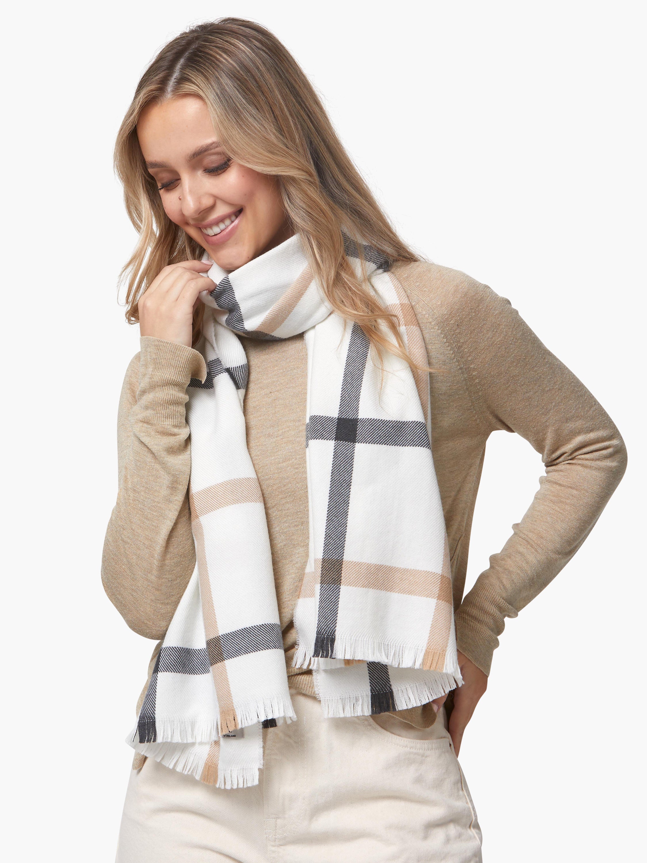 The Foxford White Neutral Stripe Extra Fine Merino Scarf offers a luxurious, stylish look crafted with care and precision. Its classic white hue with neutral camel and grey stripes will keep you warm and fashionable in cold weather. This versatile scarf pairs well with various looks, from casual to formal. Made in our Mill in County Mayo.