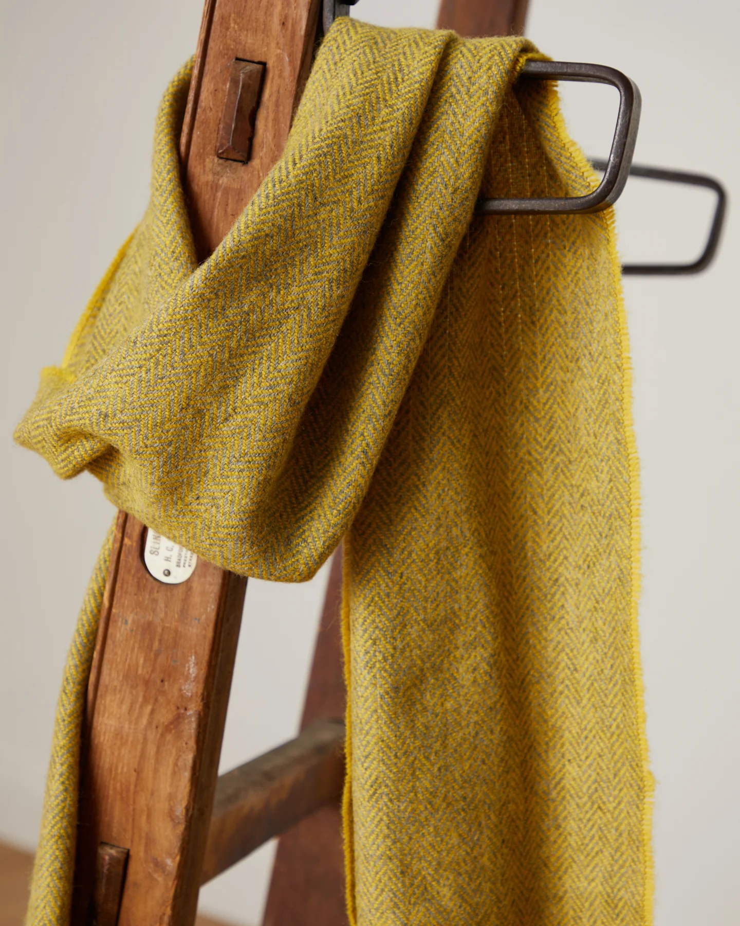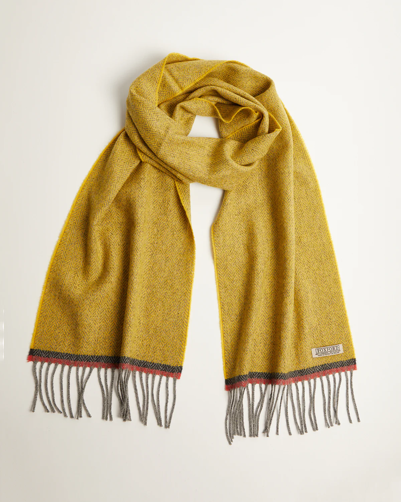 Expertly woven at FOXFORD in a traditional herringbone style, this lambswool scarf is designed for those chilly days when all you want to do is wrap up against the elements. Made using the same techniques that have been employed for over 130 years in the making of our signature throws, this timeless style is finished with subtle terracotta and black stripes, with a traditional roll fringe in stone grey.