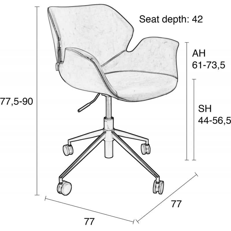 Sure, you can use our dining chair, Nikki, as an office chair. But you’ll be far more comfortable working on office chair Nikki! Yes, that’s right! We converted our popular Nikki into an office chair version. With her own practical wheels and swivel base. For a real executive look, we chose all-black and all-brown PU-leather upholstery.