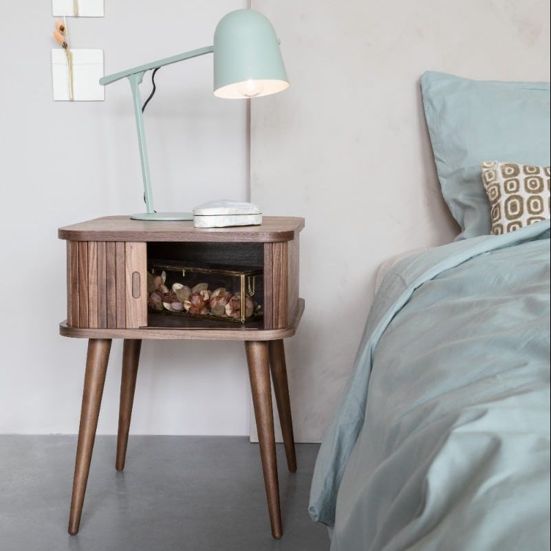 Materials: 18 mm black oak veneered MDF table top & bottom Solid black oak tambour door and legs (Ø 45 mm)