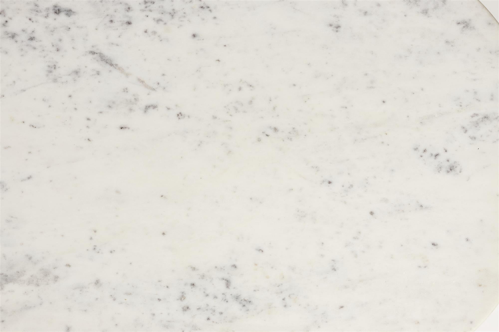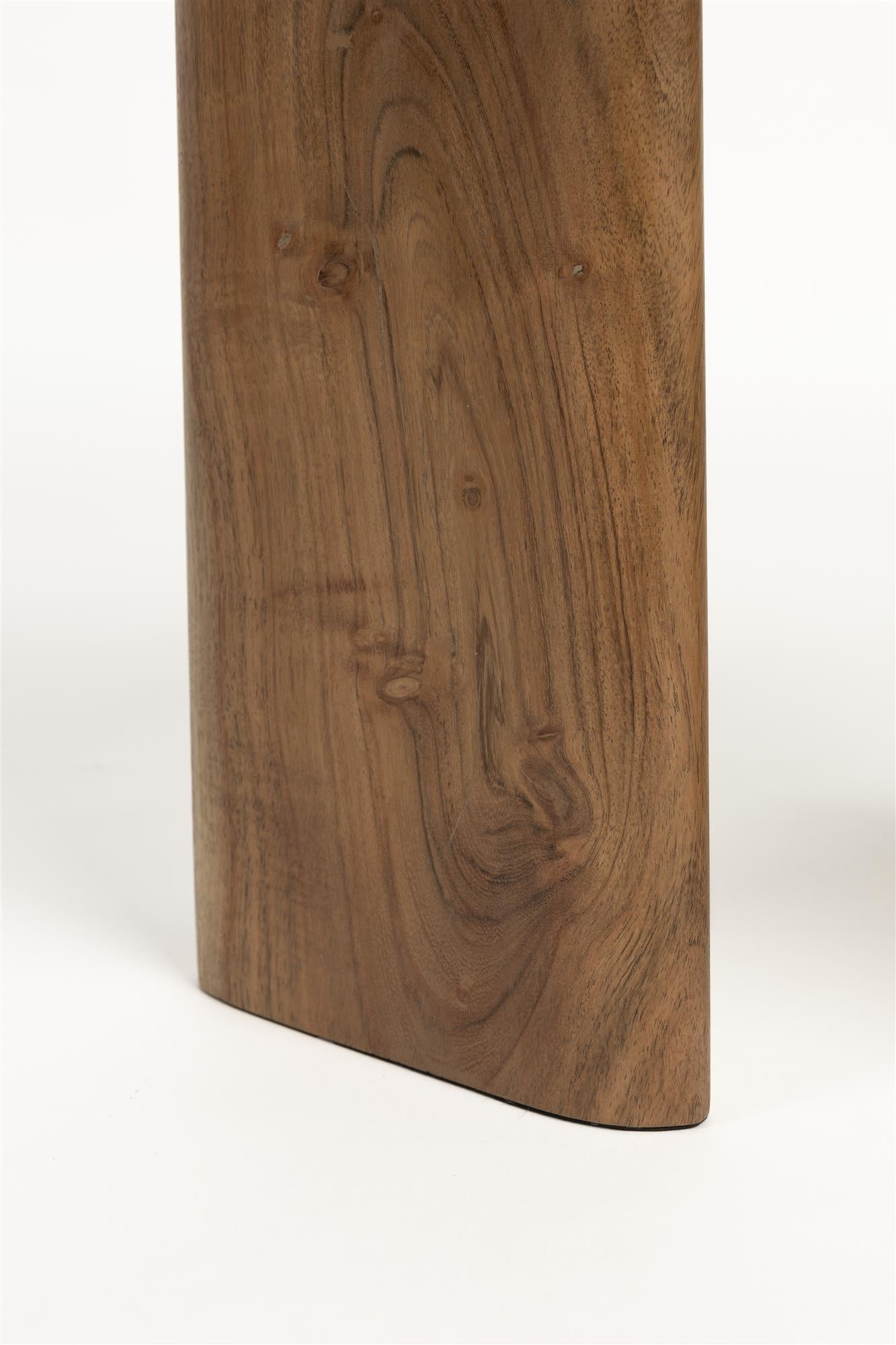 The Ronda side table boasts a marble tabletop that perfectly complements the rich, brown acacia wood legs, resulting in a striking visual. The sleek, oval-shaped structure of the sturdy wooden legs adds a touch of elegance, making this side table a sophisticated addition to any room. Its combination of contemporary design and natural warmth makes it a beautiful accent to any space.