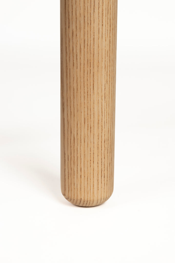 Storm has beautiful rounded finished shapes, a thick wooden tabletop and robust table legs. This combination makes it a statement piece. The table is made of ash wood, has a beautiful V-groove pattern.