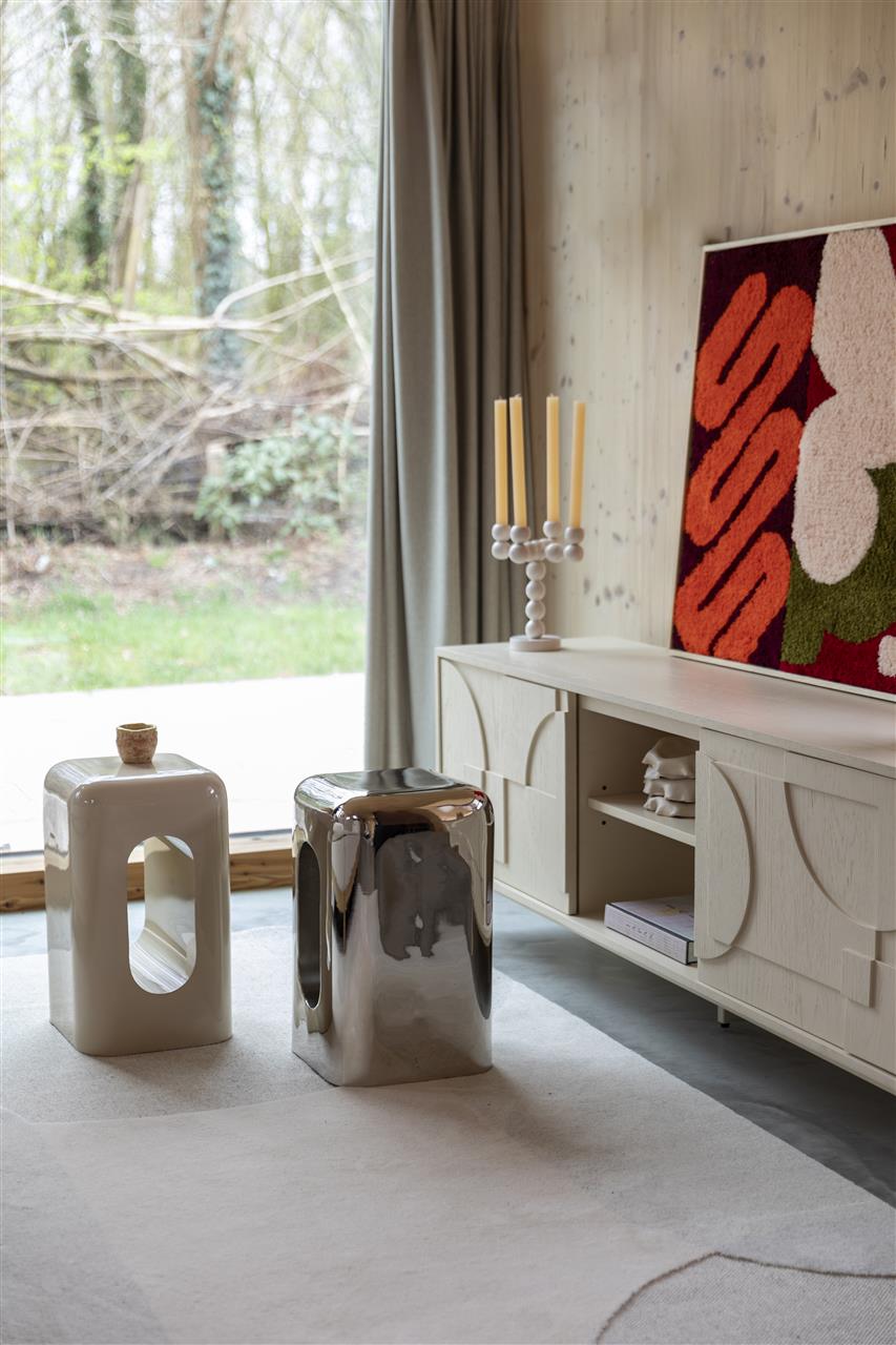 Why place your drink on an ordinary table when you can set it down on the Creek side table? This small design piece in a warm beige shade quickly becomes the shining centerpiece of your interior – not only thanks to its glossy finish but also because of its distinctive shape.
