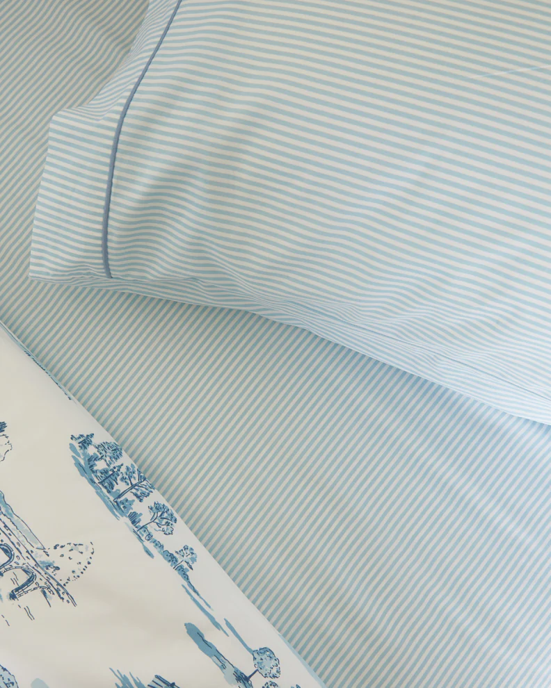 FOXFORD Ticking Stripe Fitted Sheet. Doze off in style with our soothing Ticking fitted sheet. Designed at FOXFORD and expertly made in Portugal, this 100% cotton sheet is soft, smooth and designed to stand the test of time.