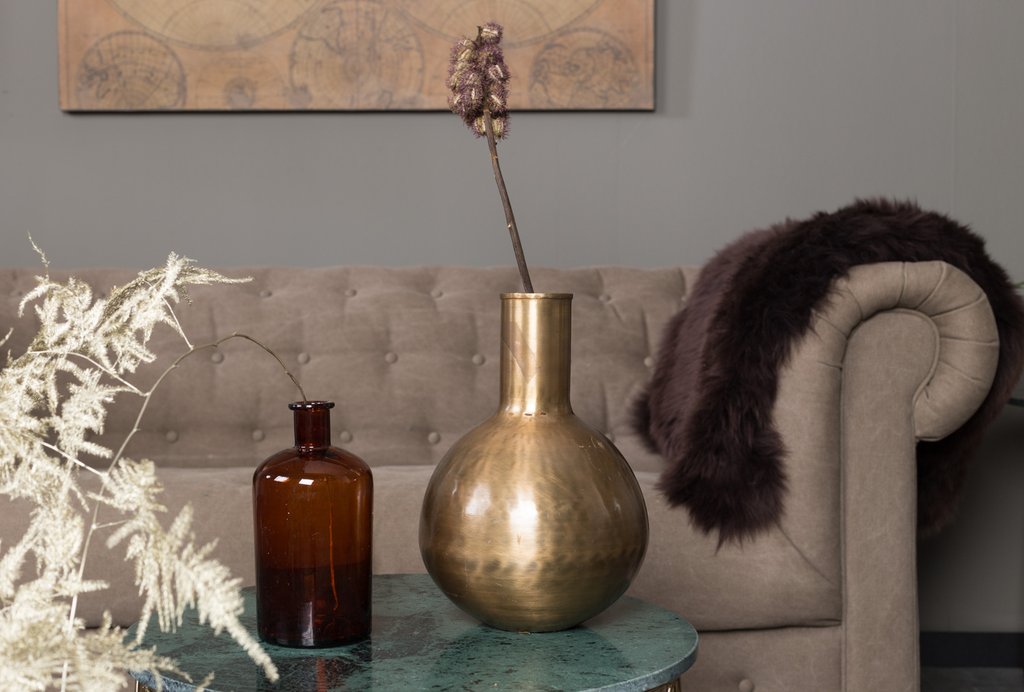 Hari Fat vase will enhance your home styling. Even empty they will look just as interesting in your home decor. With antique brass finish for the right amount of shine!